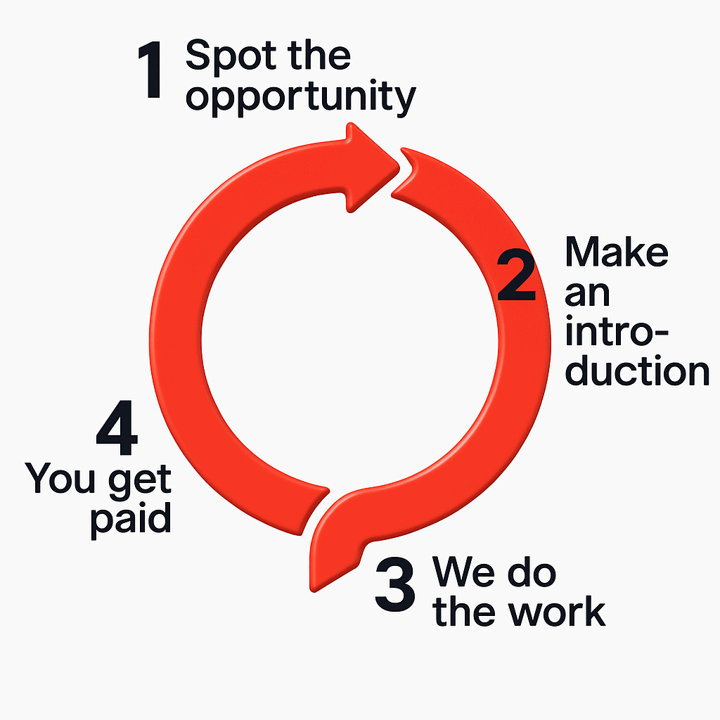 Yes! If you work in telecoms, finance, software, commercial property, or any B2B sector and you talk to business owners — this is a brilliant way to be more valuable, deepen relationships, and create a new income stream without doing any extra selling.